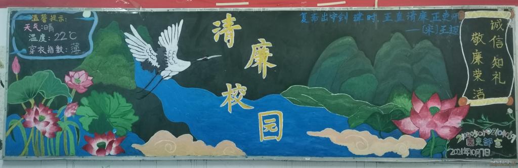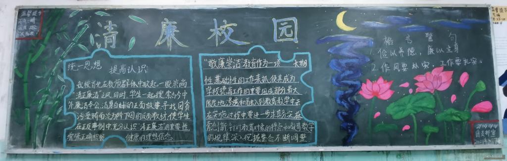 本次板报绚丽多姿,几笔勾勒似云锦,点墨绘出心中情。通过板报的方式传达出了本次活动的主题,让学生们通过画面感受到清廉的最深层含义,同时也为清廉校园起到了积极地教育宣传作用。