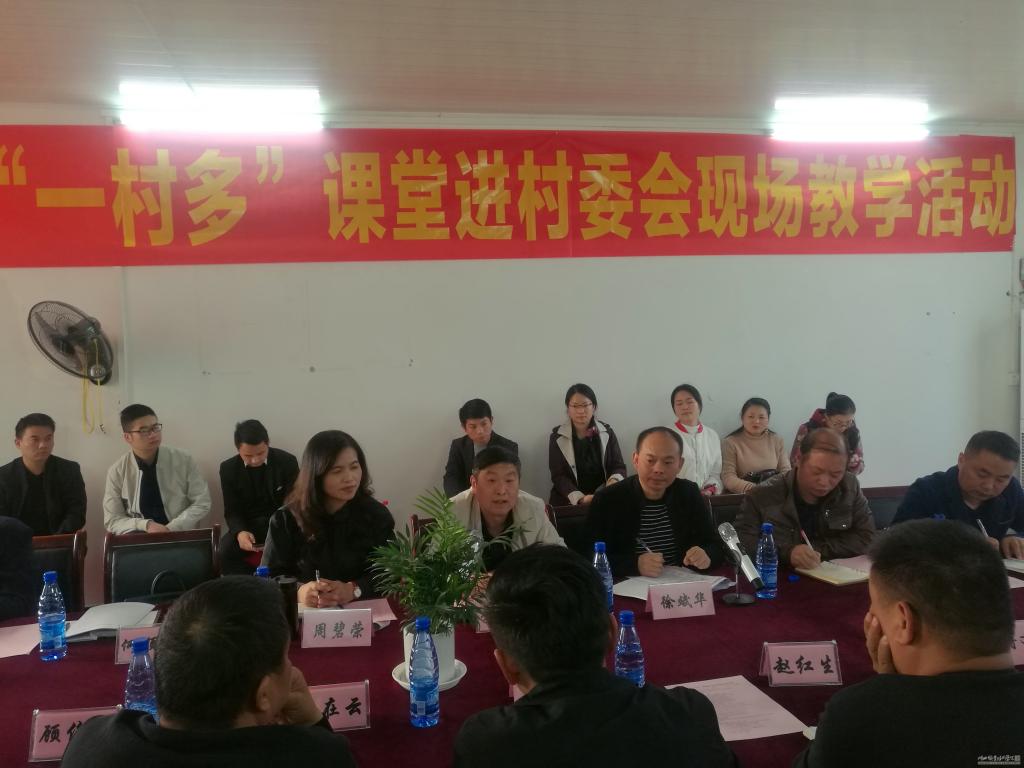 2019年11月15日,一场别开生面的教学活动在汉川市汈东街道办事处长乐村村委会会议室举行,beat365vip官网登录入口根据“一村多”项目教学需求,将课堂搬进村委会,展开村级治理现场教学,学校党委成员、副校长李佳圣率领beat365vip官网登录入口管理团队、相关专业教师代表、beat365vip官网登录入口2018级“一村多”项目学员及学校相关处室管理人员参与了此次教学活动。