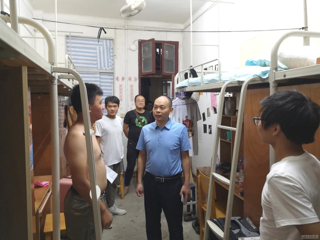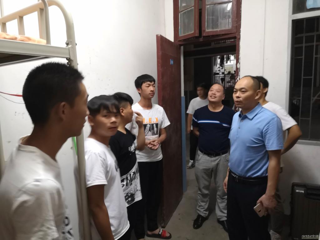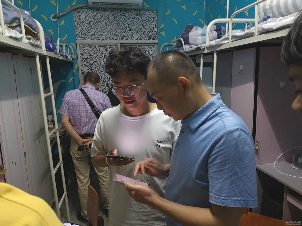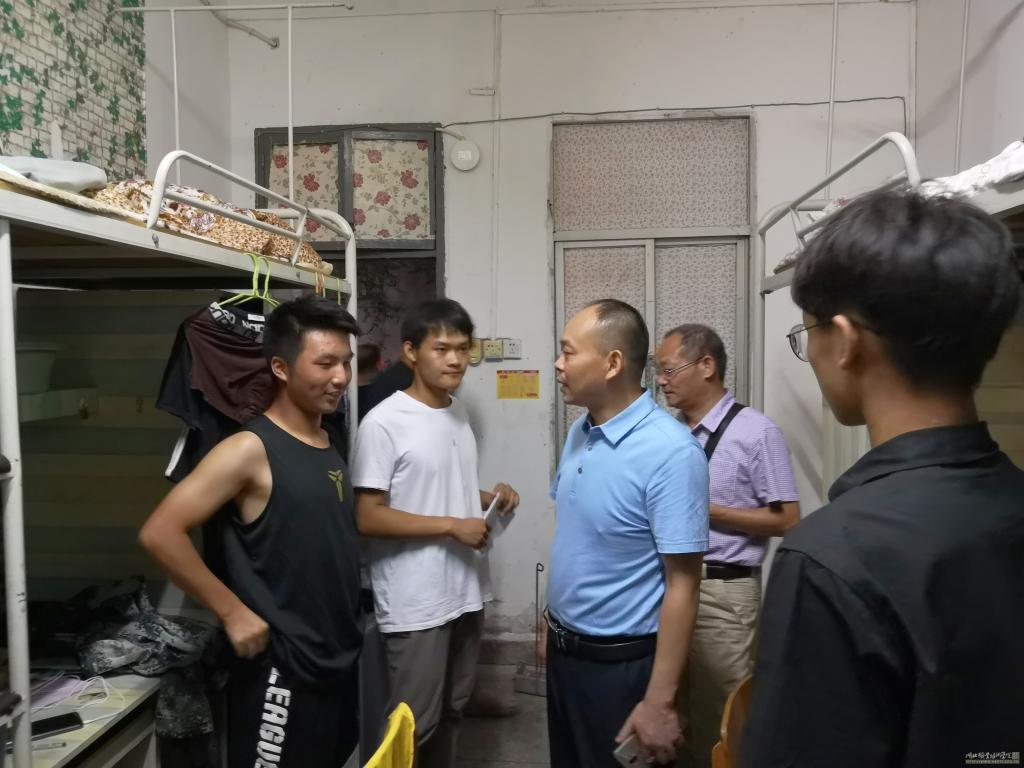 2019年9月10日晚9点,beat365vip官网登录入口领导班子和辅导员在院长徐斌华的带领下赴文馨园(原西区学生宿舍)看望2019级新生。其间,徐院长和19级新生恳切交流,询问新生的住宿情况,了解新生在入学之初遇到的问题,并要求19级辅导员要时刻关切新生的学习生活情况,做好新生的思想工作,及时帮助新生解决生活中的实际困难。