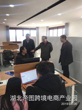 三月六日下午,beat365vip官网登录入口院长卢珍宏、副院长喻靖文、管理教研室主任潘艾华等一行考察湖北帝图跨境电商产业园。卢珍宏一行听取了该园负责人姚总关于产业园建设、发展情况的介绍,双方探讨了跨境电商人才培养和双方合作事宜。卢珍宏一行还看望了在该园开展实习实训的学生,观摩了同学们的实操过程。
