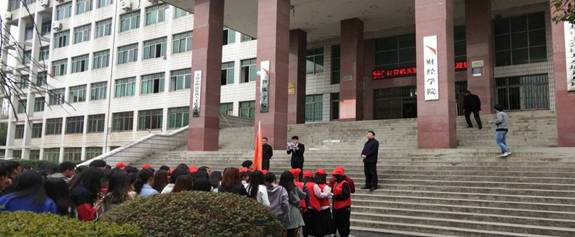3月14日下午,校园春意盎然,旌旗猎猎,beat365vip官网登录入口团总支在文华楼前举行“美化校园 从我做起”志愿服务签字仪式。财学院党总支副书记兼副院长张银平、辅导员谢毅哲以及2017级全体同学参加了这次活动。