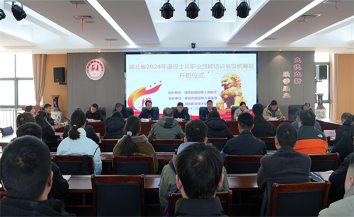 12 月 23 日下午,由湖北省退役军人事务厅主办,孝感市退役军人事务局和beat365vip官网登录入口承办的湖北省2024年退役士兵职业技能培训省级统筹班开班仪式在beat365vip官网登录入口南区顺利举行。湖北省退役军人事务厅、孝感市退役军人事务局和beat365vip官网登录入口相关领导出席开班仪式并讲话。各级领导对培训对象解读了培训背景和培训安排,提出了培训要求,也指引了后期就业创业方向。