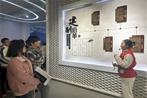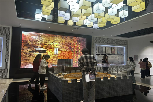 活动首站来到孝感市博物馆。在讲解员的引导下,同学们系统参观了“孝感文明史”“红色征程·孝感革命斗争史”“孝感动天”“窑火陶韵·湖北民窑马口窑”主题展厅,通过青铜器、陶器、革命文物等2000余件展品,深入了解了孝感从史前文明到近现代的发展脉络。旅游管理专业学生谢诗慧表示:“展陈设计中的数字化互动装置让我深受启发,未来在智慧景区服务与管理中,可以借鉴这种沉浸式体验设计理念。”