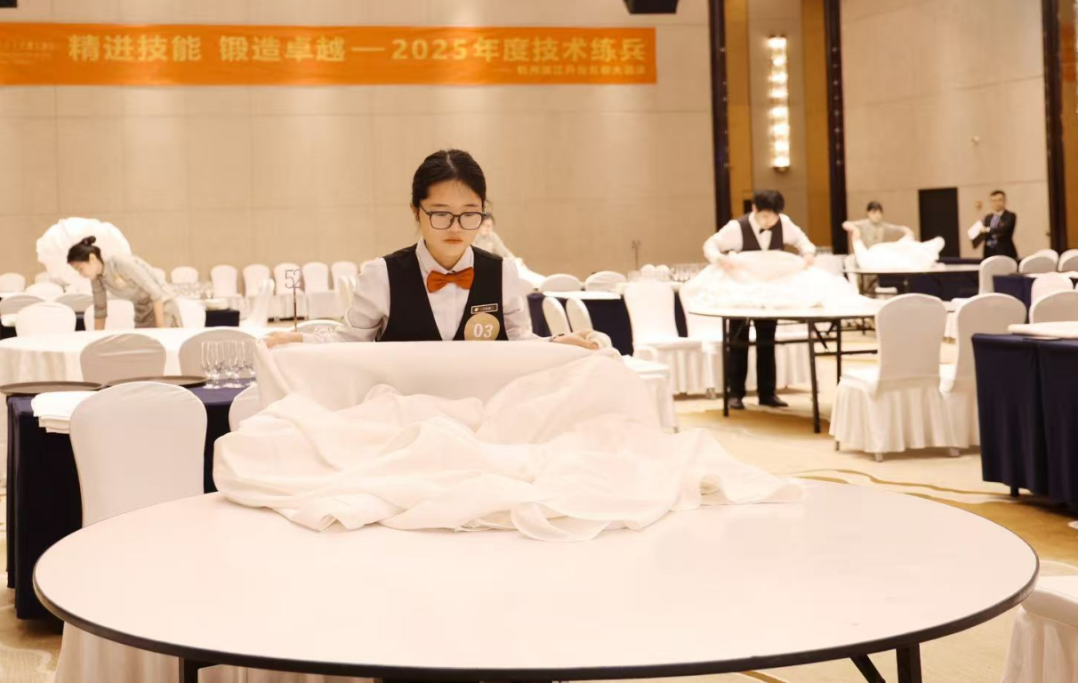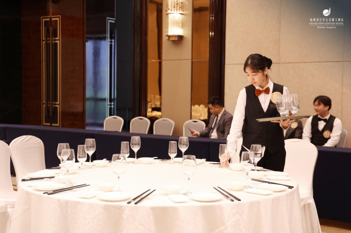 4月1日,杭州滨江开元名都大酒店举办年度员工技能比武大赛,来自财经与旅游学院的实习生表现卓越,包揽宴会摆台专业组赛项前三名和托盘竞速赛项专业组前两名、非专业组冠军,展现了扎实的专业素养与过硬的实践能力。