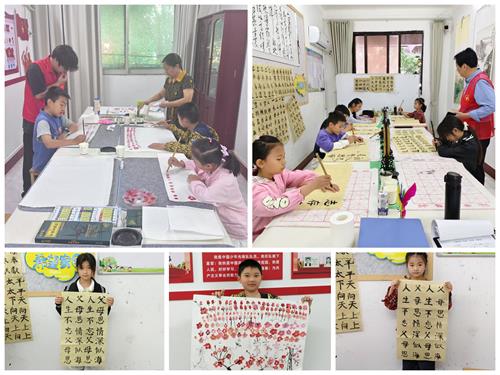 活动现场的书画室内,老师专注地教授孩子们写字绘画,志愿者们则在幕后默默付出。他们认真整理教具,保障各类材料供应充足;同时,有序维持现场秩序,为孩子们打造出一个安静、有序的艺术创作环境。