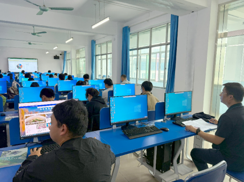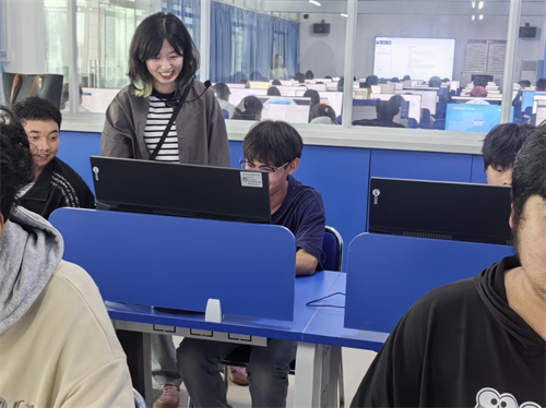 郭校长全程认真聆听,详细记录教学环节设计、教学内容呈现、师生互动情况、学生课堂表现以及教学目标落地等关键信息。并深入学生中间,了解学生完成实训任务所需要的专业理论知识和实践技能水平掌握和熟练程度。