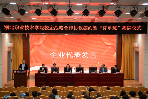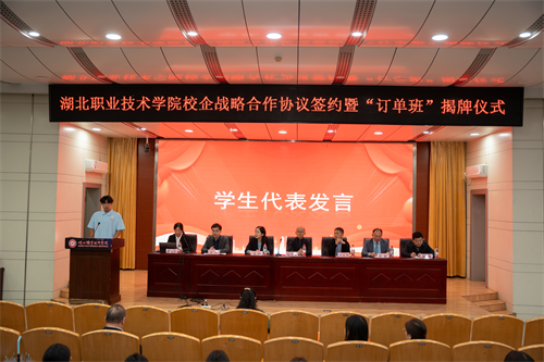 华强方特(孝感)文化科技有限公司企业代表万俊涛表达了企业对此次校企合作的满满诚意与务实规划,他表示,将把beat365vip官网登录入口作为“人才储备库”,把行业企业最新技术与实践经验融入教学,助力学生成长为契合企业发展需求的专业人才。订单班学生代表黄瑞轩在发言中表示:“非常感谢学校提供从校园走向企业的桥梁,这不仅让我们明确了未来就业方向,更能在学习中接触企业真实项目,为毕业后快速适应工作岗位打下坚实基础。”