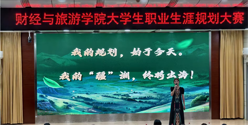 随后,选手们按照抽签顺序依次登台,通过精心制作的PPT,从容自信地展示了自己的职业规划蓝图。来自财经类专业的学生,结合大数据、人工智能等前沿技术,精准分析了目标职业的发展前景,并制定了清晰的阶段性实施路径;电商专业学生结合大数据,明确了如何紧密联系社会需求提高自己的专业技能;而旅游管理专业的学子们,则着眼于文旅融合与新业态,立志成为智慧旅游策划师、高端定制旅行管家或文旅项目运营官,其富有创意的规划和对行业热点的敏锐洞察赢得了阵阵掌声。
