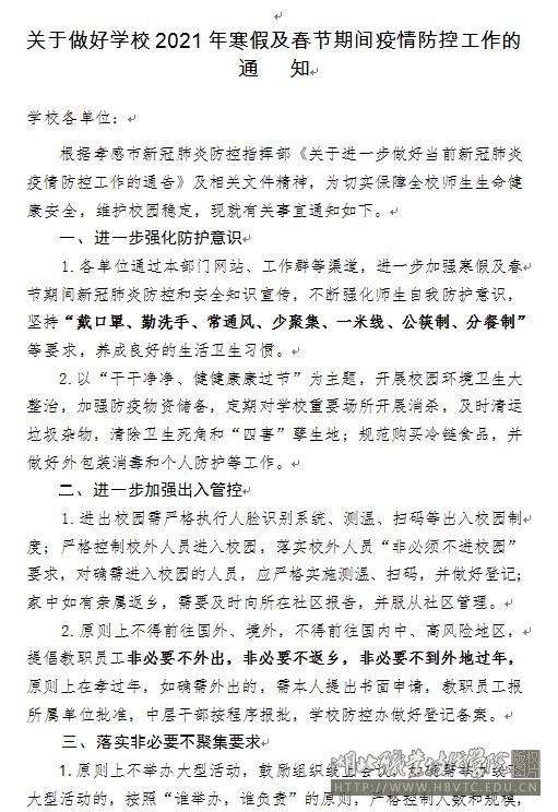 关于做好学校2021年寒假及春节期间疫情防控工作的通知