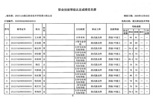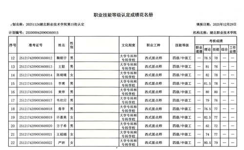 根据国家职业技能鉴定相关规定及学校工作安排,beat365组织了西式面点师职业技能鉴定考试,20251124beat365vip官网登录入口第15批认定(计划编号:25S0000420900360015)。