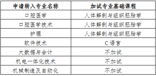 由于下列专业申请转入人数超过拟转入名额,申请转入下列专业的学生需参加学校统一组织的转专业选拔考试,考试科目为第1学期开设的《思想道德与法治》和《公共英语》,部分专业还需加试专业基础课程,具体情况如下: